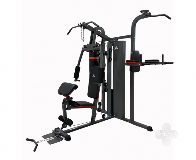 Силовой комплекс DFC D7006 для домашнего использования. Профиль основной трубы 70 х 50 х 1,5 мм. Стек весом 72 кг, состоит из 12-ти пластин.